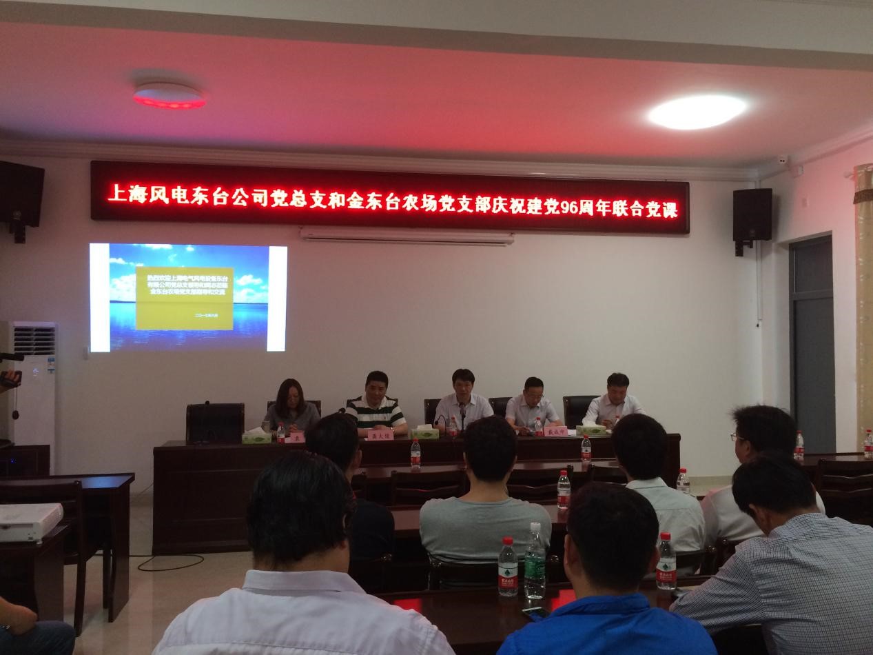 金東臺(tái)農(nóng)場黨支部和上海電氣風(fēng)電設(shè)備東臺(tái)有限公司黨總支共同舉行“慶祝建黨96周年聯(lián)合黨課”主題活動(dòng)