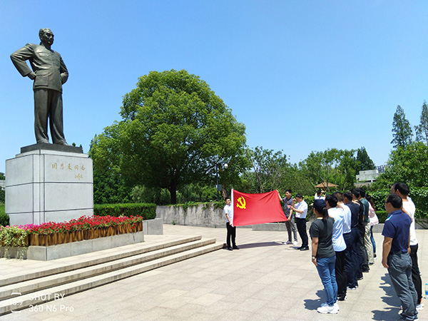 根據(jù)活動(dòng)安排,兩個(gè)支部20多名黨員和入黨積極分子共赴淮安參觀周恩來紀(jì)念館及周恩來故居,緬懷周恩來總理作為老一輩無產(chǎn)階級(jí)革命家的豐功偉績(jī)。尤開軍副總經(jīng)理帶領(lǐng)全體黨員在總理高大銅像面前,面對(duì)鮮紅的黨旗,重溫入黨誓詞,解讀了革命精神,增強(qiáng)了責(zé)任感、使命感和榮譽(yù)感。