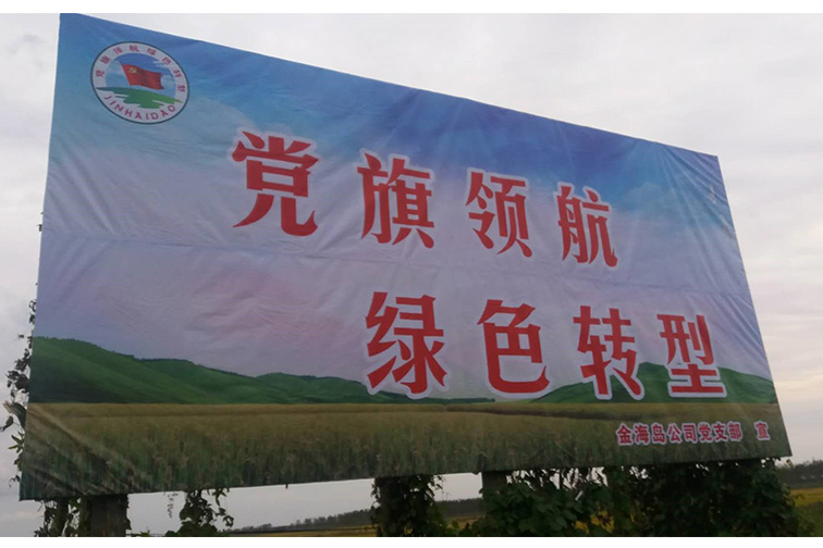 在黨建品牌設(shè)計時,公司黨支部根據(jù)公司所處國家級自然保護(hù)區(qū)區(qū)位特點、所在地區(qū)綠色轉(zhuǎn)型發(fā)展思路和自身轉(zhuǎn)型發(fā)展工作要求,確立了“黨旗領(lǐng)航、綠色轉(zhuǎn)型”為公司黨建品牌名稱。黨建品牌標(biāo)識由黨旗、藍(lán)天、灘涂、JINHAIDAO(金海島)以及品牌名稱等元素組成?!包h旗”在“藍(lán)天”的映襯下,高高地飄揚(yáng)在綠灘涂上,寓示著黨旗引領(lǐng)金海島公司綠色轉(zhuǎn)型;“綠灘涂”與鹽城的“綠色轉(zhuǎn)型、綠色跨越”相一致,同時“綠”代表生態(tài)、代表高質(zhì)量、代表著希望;以“黨旗”為中心,寓意金海島公司圍繞中心抓黨建,抓好黨建促轉(zhuǎn)型,讓黨組織成為推動企業(yè)發(fā)展的核心,讓黨員成為推動企業(yè)發(fā)展的先鋒。
