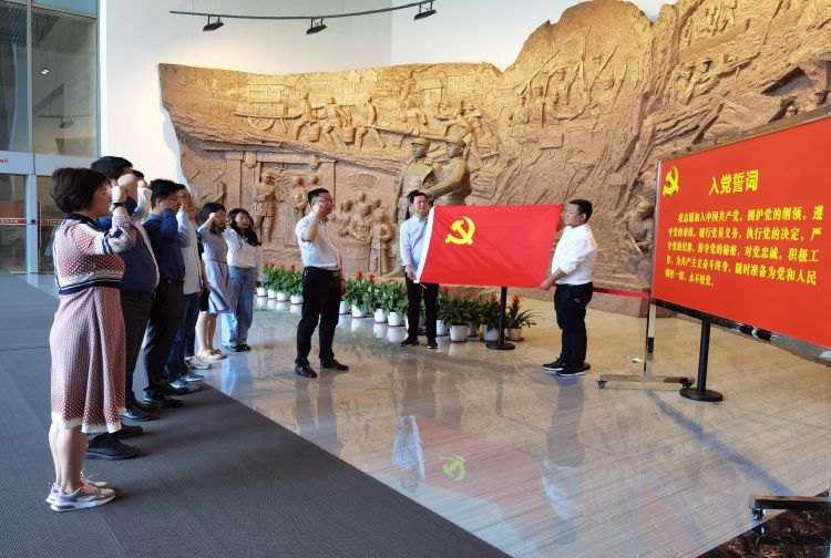 在黃橋戰(zhàn)役紀(jì)念館,全體黨員在黨旗前莊嚴(yán)地舉起右拳,重溫入黨誓詞,向黨表示自己的堅(jiān)定政治信念,深切感悟作為一個共產(chǎn)黨人不能忘記的“初心”和必須牢記的“使命”。宣誓結(jié)束后,全體黨員參觀了紀(jì)念館,觀看歷史圖片、文物,一邊細(xì)看文物史料,一邊聆聽講解,學(xué)習(xí)黃橋戰(zhàn)役的歷史和精神。展館內(nèi),每一張浸透著革命歷史的老照片、每一幅真實(shí)場景的再現(xiàn)、每一段可歌可泣的紅色故事,都震撼著在場黨員同志的內(nèi)心。
