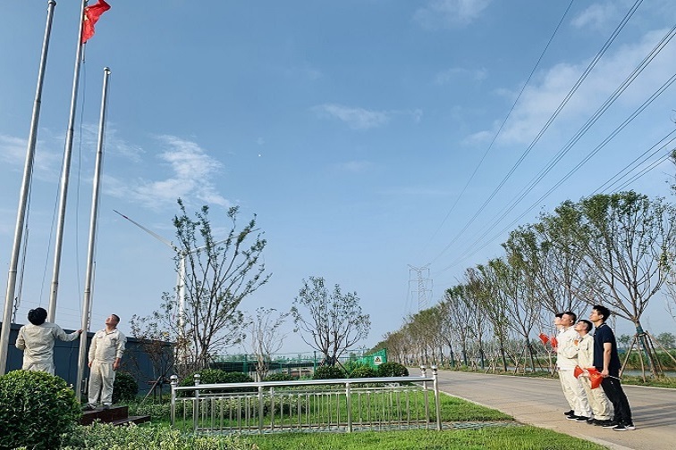 7月1日清晨6點整,迎著初升的太陽,灌云洋橋200MW漁光一體光伏平價上網(wǎng)項目現(xiàn)場,海通富公司黨支部黨員和項目運維單位工作人員整齊列隊,他們在這里舉行“慶七一”升國旗活動。嘹亮的《義勇軍進行曲》響徹項目上空,鮮艷的五星紅旗冉冉升起,全體一線奮戰(zhàn)者們用最真摯的愛表達對黨的祝福,用堅守在一線的實際行動詮釋對黨絕對忠誠。
