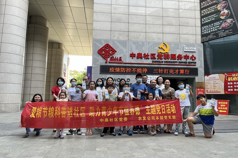 為鞏固拓展黨史學習教育成果,賡續(xù)紅色血脈,弘揚優(yōu)良傳統,8月9日下午,省沿海農發(fā)公司本部黨支部聯合建鄴區(qū)中奧社區(qū)開展了“愛糧節(jié)糧科普進社區(qū) 助力青少年節(jié)儉養(yǎng)德”主題黨日活動。農發(fā)公司本部黨支部黨員、發(fā)展對象、積極分子及志愿者參加活動。