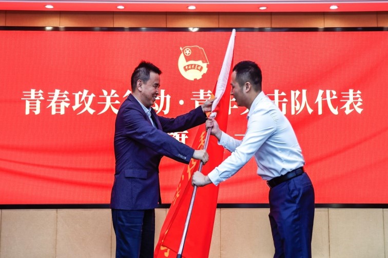 活動(dòng)現(xiàn)場(chǎng),汪帆代表青年突擊隊(duì)鄭重接過(guò)集團(tuán)黨委書(shū)記、董事長(zhǎng)許峰的授旗。