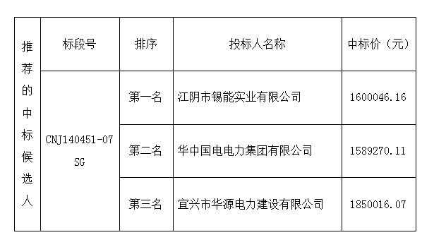 條子泥墾區(qū)(一期)條南片一至四區(qū)西片配套工程項目供電線路工程施工CNJ140451-07SG標段評標工作已經結束,現將中標候選人公示如下:
