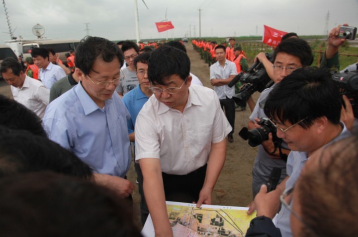 2011年8月7日下午,江蘇省省長李學勇帶領(lǐng)省有關(guān)部門視察東臺條子泥圍墾工程項目,省沿海辦專職副主任、沿海開發(fā)集團公司董事長梁學忠在項目現(xiàn)場匯報了條子泥圍墾工作各項進展情況。李省長指出,東臺沿海百萬畝灘涂圍墾是江蘇沿海開發(fā)的重點工程,要堅持科學施工、依法施工、和諧施工,積極創(chuàng)新體制機制,實現(xiàn)沿海地區(qū)可持續(xù)發(fā)展。