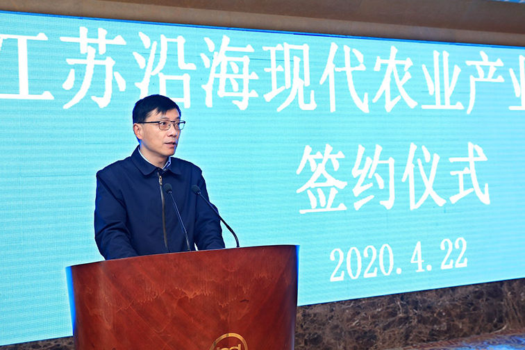 鄧東升在致辭中指出,江蘇沿?,F(xiàn)代農(nóng)業(yè)產(chǎn)業(yè)園項目建設是省沿海開發(fā)集團推進現(xiàn)代農(nóng)業(yè)轉(zhuǎn)型升級的重要舉措,也是發(fā)揮優(yōu)勢產(chǎn)業(yè)資源、深化企地融合發(fā)展的有益探索,項目建成后有助于推進省沿海集團農(nóng)產(chǎn)品“產(chǎn)儲加研”業(yè)務聯(lián)動,進一步延伸產(chǎn)業(yè)鏈,提升價值鏈,打造供應鏈。省沿海集團與大豐區(qū)的友誼由來已久,此次共建現(xiàn)代農(nóng)業(yè)現(xiàn)代產(chǎn)業(yè)園,更是開啟了雙方深層次開放合作的新篇章。他表示,將以現(xiàn)代農(nóng)業(yè)產(chǎn)業(yè)園項目簽約為新起點,與大豐攜手并肩、齊頭并進,全面落實國家糧食安全戰(zhàn)略,全面推進現(xiàn)代農(nóng)業(yè)產(chǎn)業(yè)發(fā)展,全面促進大豐地區(qū)經(jīng)濟社會發(fā)展,為建設強富美高新江蘇作出新貢獻。
