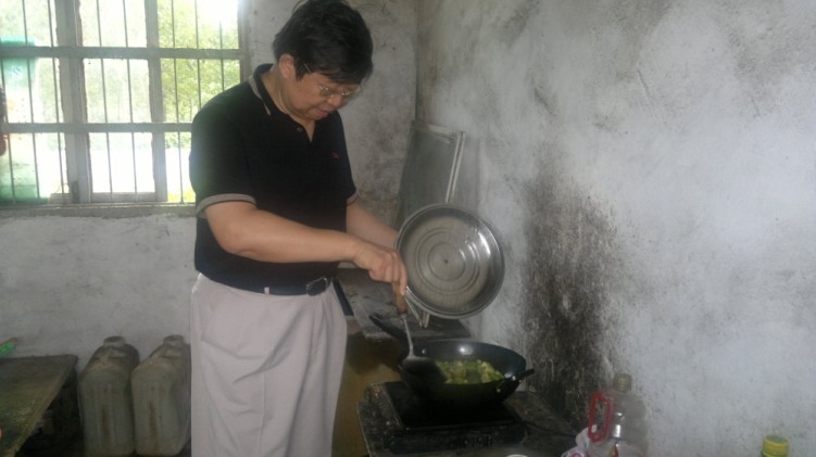 梁學(xué)忠董事長(zhǎng)在農(nóng)場(chǎng)職工廚房