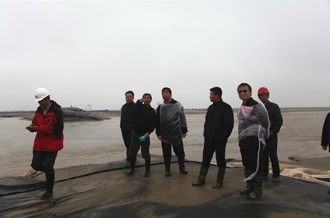 4月18日—20日,省政府副秘書長(zhǎng)徐立等一行深入條子泥匡圍工程開(kāi)展“三解三促”活動(dòng),集團(tuán)公司董事長(zhǎng)、黨委書記梁學(xué)忠一同調(diào)研。18日上午,徐立副秘書長(zhǎng)一行下了高速后,直接來(lái)到條子泥匡圍一期工程二標(biāo)段施工現(xiàn)場(chǎng),在新筑成的圍堤上,徐立副秘書長(zhǎng)不顧路面濕滑,邊走邊看,詳細(xì)了解工程技術(shù)和建設(shè)施工管理情況,和施工單位負(fù)責(zé)同志親切交流,對(duì)工程的建設(shè)管理、施工進(jìn)展和所取得的成效給予充分肯定。19日下午和20日上午,徐立副秘書長(zhǎng)又分別來(lái)到工程三標(biāo)段和一標(biāo)段施工現(xiàn)場(chǎng),冒著蒙蒙細(xì)雨,全面察看工程進(jìn)展情況。在為期三天的“三解三促”活動(dòng)中,徐立副秘書長(zhǎng)的足跡踏遍了條子泥匡圍一期工程的三個(gè)標(biāo)段,行程累計(jì)近30公里。