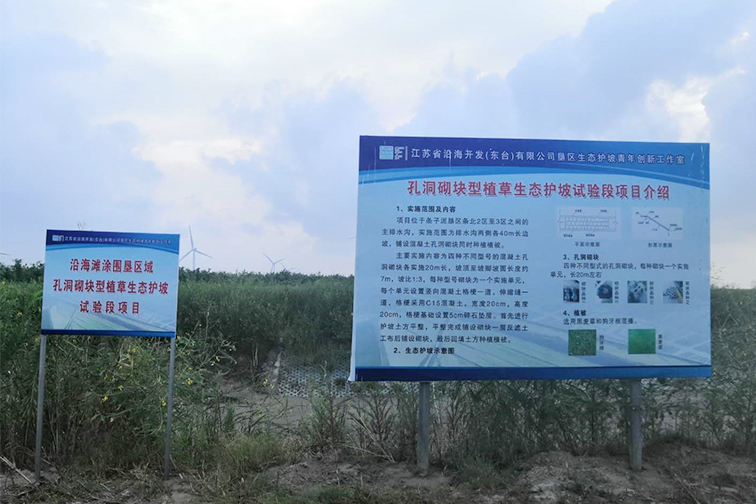 沿海集團農(nóng)業(yè)企業(yè)都位于沿海灘涂圍墾區(qū)域,土質(zhì)均為粉砂土,粉砂土顆粒細小,遇水易流失,如何提高護坡工程效益,降低溝渠清淤、護坡維修的周期頻率,節(jié)約維修成本,更好的服務墾區(qū)農(nóng)業(yè)生產(chǎn)是墾區(qū)生態(tài)護坡青年創(chuàng)新工作室主攻的問題。工作室根據(jù)墾區(qū)粉砂土的特性,因地制宜針對灘涂圍墾區(qū)域,結(jié)合理論研究,確定了實際護坡效果好的砌塊型式和適合墾區(qū)鹽堿土生長的植被,形成了《灘涂圍墾區(qū)域孔洞砌塊型植草護坡設計施工導則》,用于指導墾區(qū)生態(tài)護坡的前期設計和具體施工。