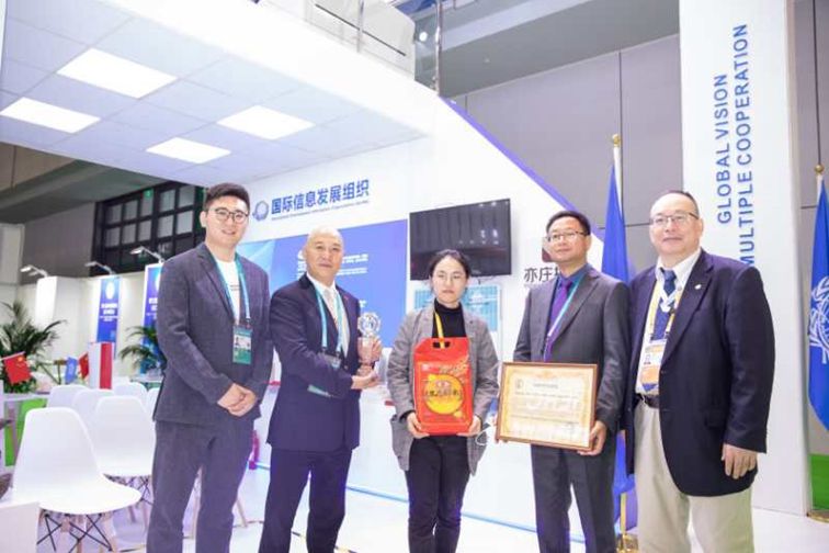 11月6日,在第三屆中國國際進口博覽會上,省沿海集團東臺公司“條子泥”品牌系列產(chǎn)品,從參展的數(shù)百家國內(nèi)外知名同行產(chǎn)品中脫穎而出,被屬于聯(lián)合國經(jīng)濟及社會理事會特殊咨商地位的非政府組織國際信息發(fā)展組織授予“千年金獎”之科技創(chuàng)新進步獎,用以表彰東臺公司在鹽堿地改造及糧食安全科技創(chuàng)新方面發(fā)揮的全球示范作用。國際信息發(fā)展組織主席李世恩為公司頒發(fā) “千年金獎”獎杯和證書。