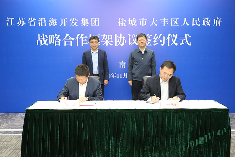 集團(tuán)公司總經(jīng)理周金陽與大豐區(qū)委副書記陳允春代表雙方簽署戰(zhàn)略合作框架協(xié)議。省沿海集團(tuán)黨委副書記姜凱、副總經(jīng)理尤開軍,集團(tuán)和大豐區(qū)相關(guān)負(fù)責(zé)人參加簽約活動,并就合作事宜進(jìn)行了深入?yún)f(xié)商。