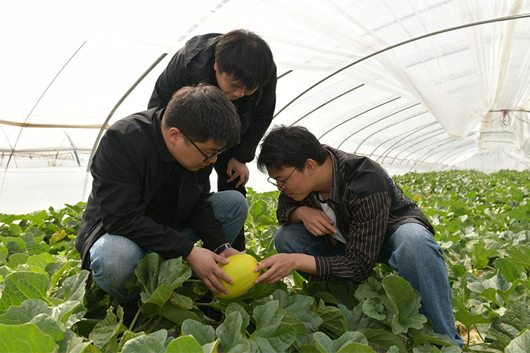 自2019年10月起,金東臺(tái)特色瓜果種植青年創(chuàng)新工作室便致力于大棚甜瓜品種篩選及種植試驗(yàn)研究,成員們一頭扎進(jìn)田壟之間,悉心耕耘,靜待收獲。“甜瓜的種植條件和西瓜類(lèi)似,適宜砂質(zhì)土壤,但對(duì)鹽堿較為敏感,要想品質(zhì)得到充分保證,篩選出適應(yīng)公司土地的適種品種是首要解決的問(wèn)題?!弊鳛轫?xiàng)目負(fù)責(zé)人,孫庭煒回憶起項(xiàng)目實(shí)施第一年時(shí)的場(chǎng)景?!拔覀儗⑦x取的3個(gè)甜瓜品種種植在同一個(gè)甜瓜大棚里,各品種相近不相鄰,有著相同的生產(chǎn)管理?xiàng)l件。但當(dāng)時(shí)所處區(qū)域部分地塊的堿性過(guò)強(qiáng),部分甜瓜幼苗移栽后很難存活,成熟后品相及口感均不達(dá)標(biāo)?!?/span>
