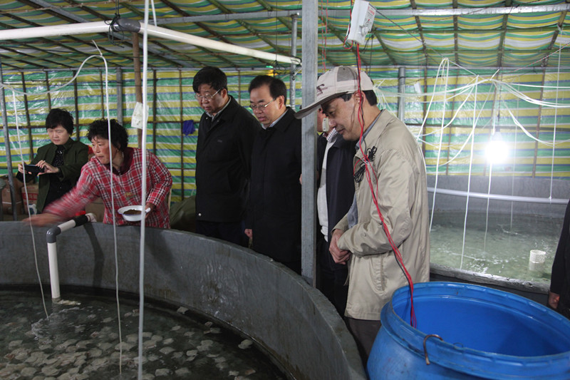 梁學(xué)忠董事長(zhǎng)一行還考察了墾區(qū)內(nèi)江蘇奇裕水產(chǎn)科技有限公司多寶魚(yú)養(yǎng)殖及池塘建設(shè)情況。