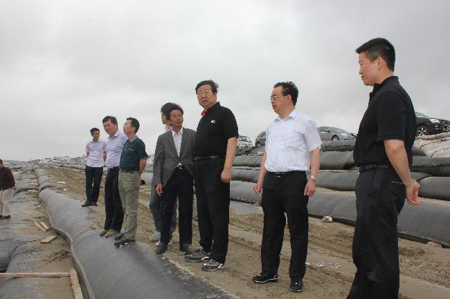 6月19日,集團公司董事長、黨委書記梁學(xué)忠來到條子泥匡圍一期工程施工現(xiàn)場,檢查工程災(zāi)后建設(shè)情況,集團公司總經(jīng)理丁建奇、副總經(jīng)理陳才俊、東臺公司總經(jīng)理周金陽和集團公司有關(guān)部門的負(fù)責(zé)人參加檢查。