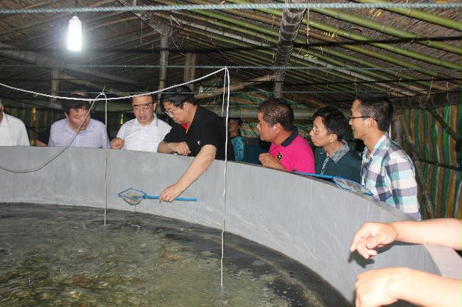 隨后,梁學(xué)忠一行又來到奇裕高科技水產(chǎn)養(yǎng)殖基地、華大產(chǎn)業(yè)園進行調(diào)研,他表示要認(rèn)真學(xué)習(xí)借鑒高效水產(chǎn)養(yǎng)殖的成功經(jīng)驗,積極研究、引進和推廣高產(chǎn)技術(shù)、高效技術(shù),優(yōu)化條子泥新圍墾區(qū)的內(nèi)部配套模式,使生產(chǎn)方式向規(guī)模、高效、集約的經(jīng)營方向發(fā)展,降低成本,提高養(yǎng)殖業(yè)的產(chǎn)出率。