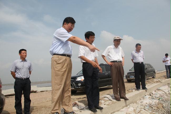 8月23、24日,集團(tuán)公司董事長(zhǎng)、黨委書(shū)記梁學(xué)忠檢查了條子泥項(xiàng)目工地,了解工程現(xiàn)狀進(jìn)度,檢查防護(hù)工程施工質(zhì)量和防臺(tái)防汛準(zhǔn)備情況。集團(tuán)公司副總經(jīng)理陳才俊、投資發(fā)展處處長(zhǎng)徐向紅及東臺(tái)公司總經(jīng)理周金陽(yáng)等陪同檢察。