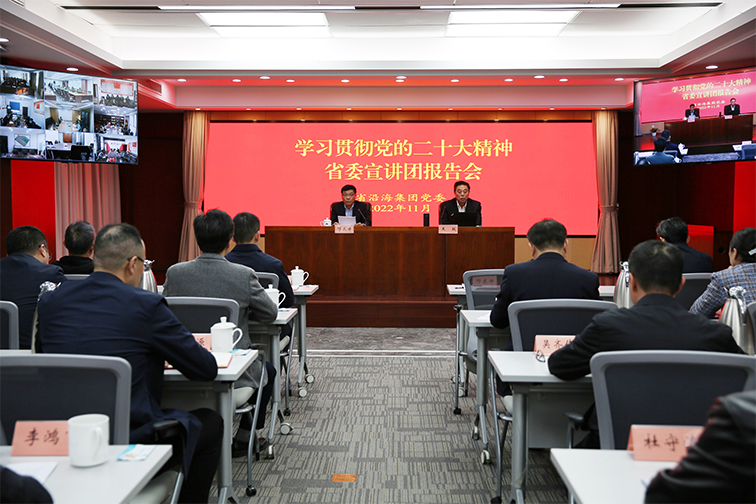 根據(jù)省委統(tǒng)一部署安排,11月18日下午,省沿海集團(tuán)黨委召開學(xué)習(xí)貫徹黨的二十大精神省委宣講團(tuán)報(bào)告會(huì)。省委宣講團(tuán)成員、南京師范大學(xué)馬克思主義學(xué)院教授委員會(huì)主任王躍教授作宣講報(bào)告,集團(tuán)黨委書記、董事長(zhǎng)鄧東升主持報(bào)告會(huì)。