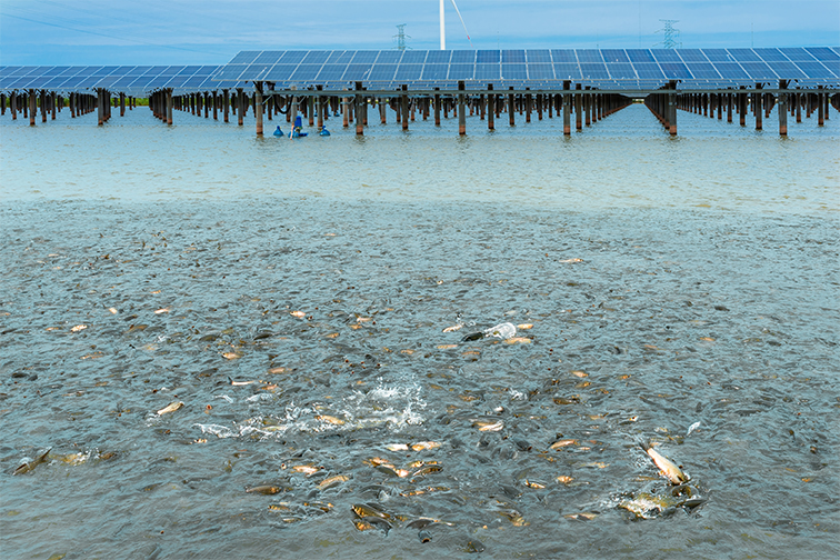 在連云港灌云縣,利用3500畝養(yǎng)殖水面建成灌云洋橋200MW漁光一體示范項目(一期),有效結(jié)合現(xiàn)代漁業(yè)與智能光伏產(chǎn)業(yè),形成上可發(fā)電、下可養(yǎng)殖的雙效益模式,實現(xiàn)更高層次綠色低碳發(fā)展。光伏項目安全運行570余天,累計上網(wǎng)電量超42380萬kwh,參與綠色、綠證交易,實現(xiàn)碳減排42.25噸;光伏下低密度草魚養(yǎng)殖,套養(yǎng)花白鰱對蝦,對蝦養(yǎng)殖畝產(chǎn)量50斤,陸基循環(huán)水設(shè)施養(yǎng)殖今年4月開展南美白對蝦苗淡化標(biāo)粗4070萬余尾,養(yǎng)殖鱸魚1萬余尾,年可實現(xiàn)兩茬苗種標(biāo)粗和一茬成魚養(yǎng)殖。