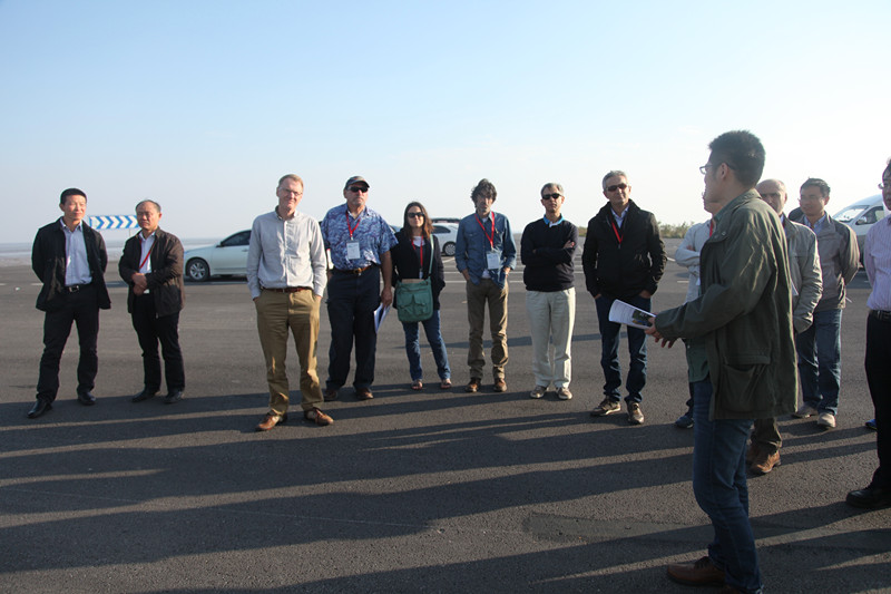 在中隔堤參觀現(xiàn)場,東臺公司王海祥副總經(jīng)理向與會的專家學者介紹了條子泥區(qū)域的水流、水動力環(huán)境、條子泥高涂養(yǎng)殖圍墾項目實施的過程以及條子泥項目內(nèi)部開發(fā)的規(guī)劃等方面的情況。在北海堤參觀現(xiàn)場,專家們遠望梁垛河口下游港道,詳細了解條子泥圍墾過程中梁垛河口下游港道的擺動情況、北海堤成型后堤外港道的變化情況以及工程建設(shè)完成后在墾區(qū)內(nèi)排水影響下的灘面港道的演變過程。