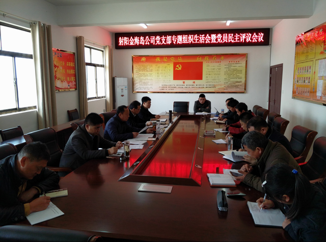 3月16日,射陽金海島經(jīng)濟開發(fā)有限公司黨支部召開專題組織生活會和開展民主評議黨員。集團公司黨委副書記、總經(jīng)理丁建奇代表集團黨委全程參加會議并進行點評。金海島公司支部全體黨員參會,支部書記薛太華主持會議。