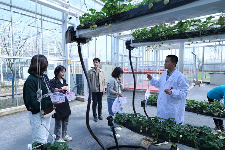 “我們采用的是無(wú)土栽培技術(shù),生長(zhǎng)全過(guò)程用電腦系統(tǒng)控制,自動(dòng)澆灌水、營(yíng)養(yǎng)液,調(diào)節(jié)溫度等,很大程度上節(jié)省了人工成本,提高了產(chǎn)值效益......”傅家邊現(xiàn)代農(nóng)業(yè)科技園內(nèi),大家一邊品嘗不同品種的草莓,一邊聽(tīng)工作人員講解現(xiàn)代草莓種植技術(shù),全程收獲滿(mǎn)滿(mǎn)。現(xiàn)代農(nóng)業(yè)是集團(tuán)三項(xiàng)主業(yè)之一,此次參觀(guān)傅家邊農(nóng)業(yè)科技園讓大家更加認(rèn)識(shí)到科技興農(nóng)的重要性。
