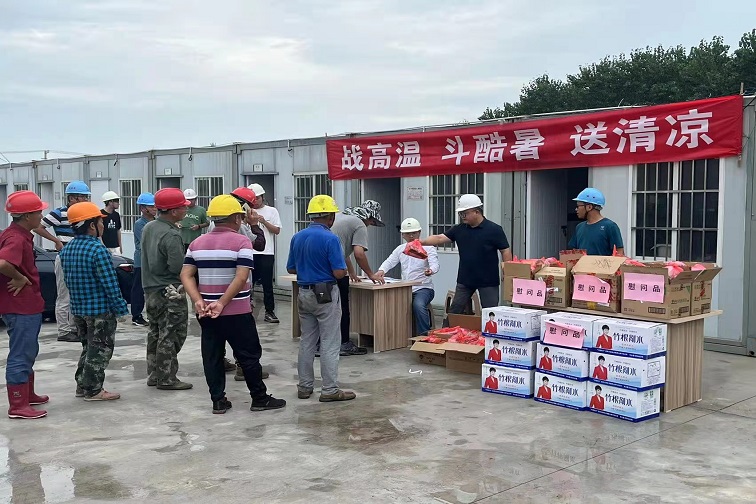 支部共建辦實(shí)事 高溫酷暑送清涼——鶴豐公司黨支部聯(lián)合建管中心黨支部為項(xiàng)目一線工人送清涼