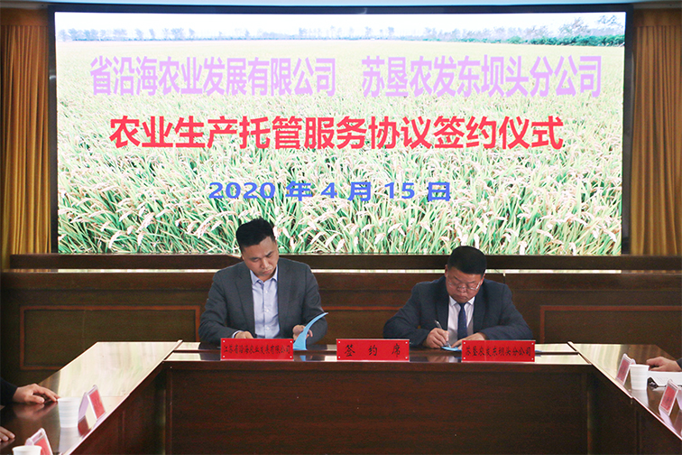 4月15日,省沿海農(nóng)發(fā)公司與蘇墾農(nóng)發(fā)東壩頭分公司舉行農(nóng)業(yè)生產(chǎn)托管服務協(xié)議簽約儀式,開啟了兩家省屬國企在農(nóng)業(yè)種植方面的合作先河,為國有企業(yè)攜手共同服務“三農(nóng)”方面起到率先垂范和引領(lǐng)推廣作用。集團副總經(jīng)理、農(nóng)發(fā)公司董事長尤開軍,農(nóng)發(fā)公司總經(jīng)理向新躍,蘇墾農(nóng)發(fā)東壩頭分公司總經(jīng)理滕金平出席簽約儀式。