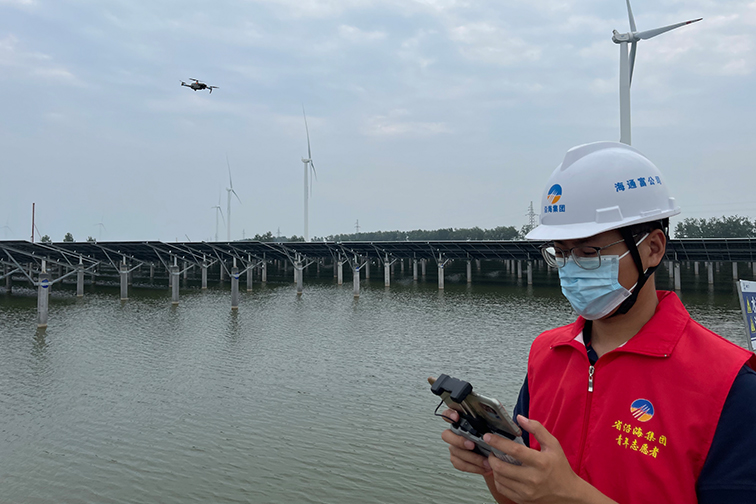 湛藍(lán)的光伏板整齊劃一鋪展開來(lái),這里是連云港灌云縣洋橋漁光項(xiàng)目現(xiàn)場(chǎng),工程占地三千余畝,塘梗岸線全長(zhǎng)約一萬(wàn)六千米,項(xiàng)目已經(jīng)安全運(yùn)營(yíng)5個(gè)月,在工程管理部楊維新看來(lái),“生產(chǎn)安全”始終是第一準(zhǔn)則。面對(duì)安全巡檢有困難的實(shí)際,楊維新創(chuàng)新安全監(jiān)督方式,利用無(wú)人機(jī)擔(dān)任空中“執(zhí)法員”精準(zhǔn)定位,更全面地巡查施工作業(yè)現(xiàn)場(chǎng),同時(shí)協(xié)同監(jiān)理、安全管理人員完成線下安全隱患排查治理,安全監(jiān)管閉環(huán)管理?!盁o(wú)人機(jī)+”將安全巡檢時(shí)間從原先一小時(shí)縮減至十分鐘,極大提高了安全巡檢效率,同時(shí)也減少了管理成本。
