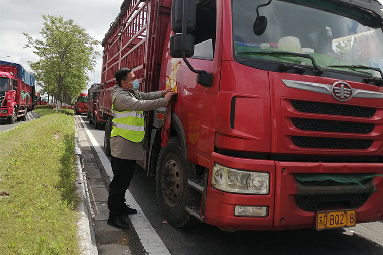 (朱金寶負(fù)責(zé)在高速出入口對接貨車進(jìn)出墾區(qū))