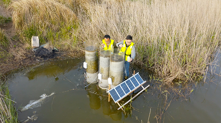 采集樣品是個(gè)辛苦活,72個(gè)采樣點(diǎn)覆蓋近3萬(wàn)畝養(yǎng)殖水面和凈化河道,每口露天池塘就平均180畝,且實(shí)驗(yàn)周期覆蓋春夏秋冬,盛夏曝曬、寒風(fēng)撲面都必須要堅(jiān)持。歷經(jīng)數(shù)百個(gè)晝夜的執(zhí)著追尋,隊(duì)員們?cè)谡{(diào)查研究完條子泥墾區(qū)近3萬(wàn)畝條南養(yǎng)殖區(qū)和凈化區(qū)水環(huán)境情況后,摸清了沿海墾區(qū)養(yǎng)殖水中污染物的分布與遷移情況,并分別從養(yǎng)殖源頭到末梢尋找到養(yǎng)殖尾水達(dá)標(biāo)排放方法。
