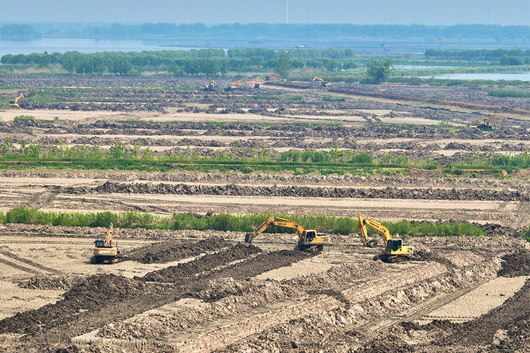 為清退湖泊保護范圍內歷史圩區(qū),恢復湖泊自由水面,有效增加湖泊水環(huán)境容量,改善湖區(qū)生態(tài),2022年10月,省沿海集團所屬土地公司、咨詢公司與中交上海航道局有限公司作為聯(lián)合體共同承接了寶應湖退圩還湖項目,項目在保障湖泊防洪供水能力、改善湖泊與沿岸自然生態(tài)環(huán)境的同時,利用廢棄底泥進行土地復墾,提升高質量多品種土地的供給能力和保護能力,增強土地供需動態(tài)平衡能力,探索生態(tài)價值轉換路徑,為全省發(fā)展提供補充耕地儲備。