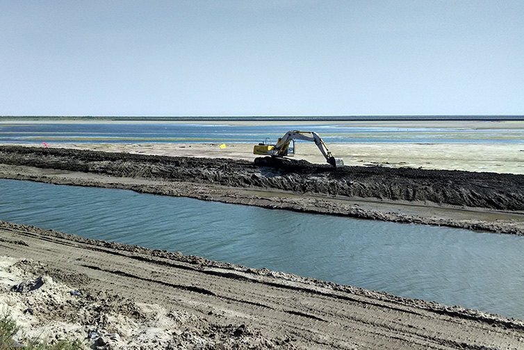 自營區(qū)所在的條北11和12區(qū)東側為2014年圍墾形成的濱海重度鹽堿地,土壤為粉質淀漿性砂土,顆粒細小,保水保肥性差且易板結。墾區(qū)整體呈現(xiàn)西高東低、北面呈南高北低的地形特征,自營區(qū)處于地勢較低區(qū)域,地下水位淺且礦化度高,加之該區(qū)位于整個墾區(qū)排灌系統(tǒng)的末端,因此改良和種植的技術挑戰(zhàn)很大、效果難以保證。在此之前,墾區(qū)內(nèi)的土壤改良工程都是對外發(fā)包的,東臺公司并沒有直接參與改土實施過程,因此缺少相應的技術和經(jīng)驗。