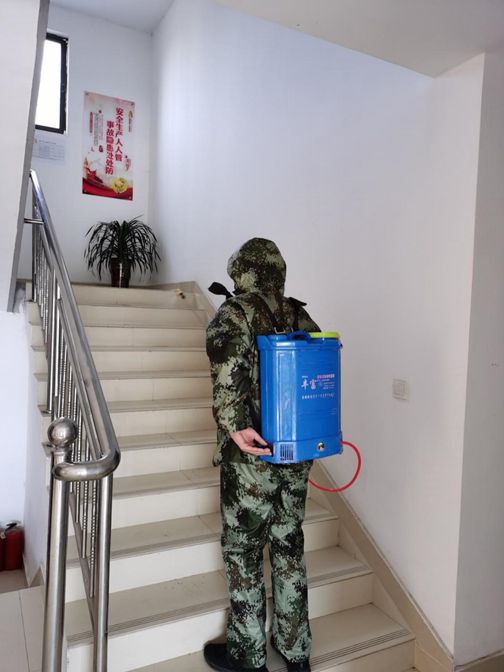 前線有青年員工的身影,“后方”也如此。凌洋公司需進(jìn)行全面消毒,也是青年員工主動承擔(dān)起艱苦的工作,身穿“隔離服”,后背大藥筒,看似笨重,卻成了全場最“帥”的那一個(gè):